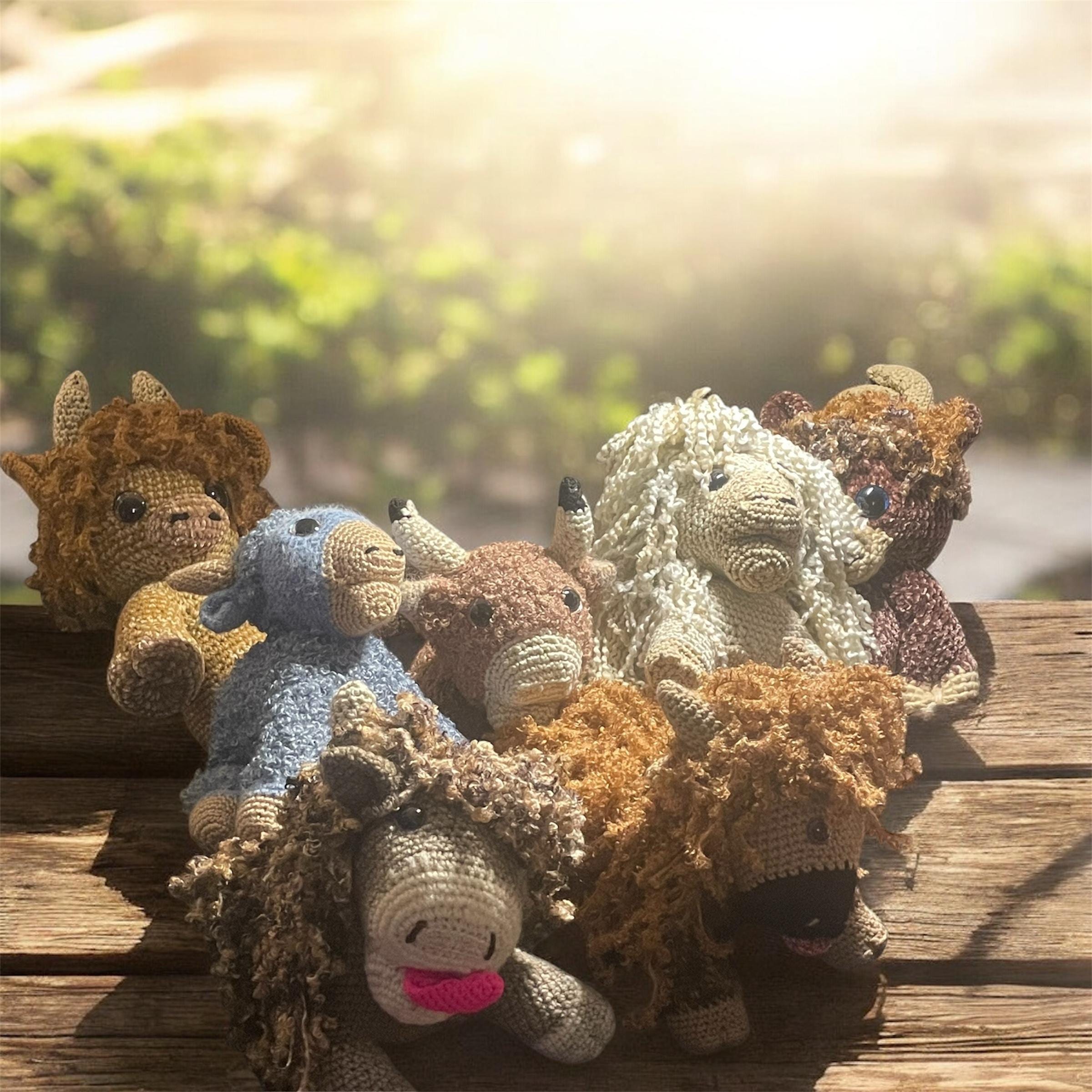 Come meet our Scottish Highland cow plushies, lovingly handmade and crocheted with high-quality yarn. Extra soft, delightfully fluffy, and perfect for gifting or collecting